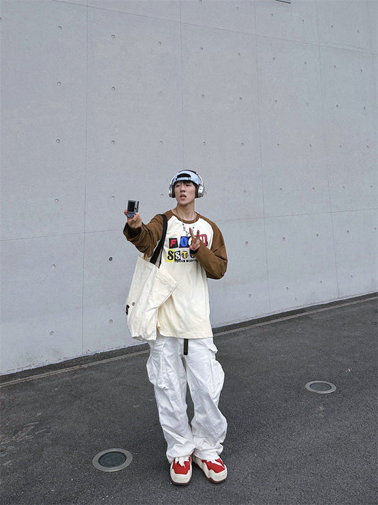 High-end design multi-pocket casual pants men's summer American retro loose straight drape workwear long pants