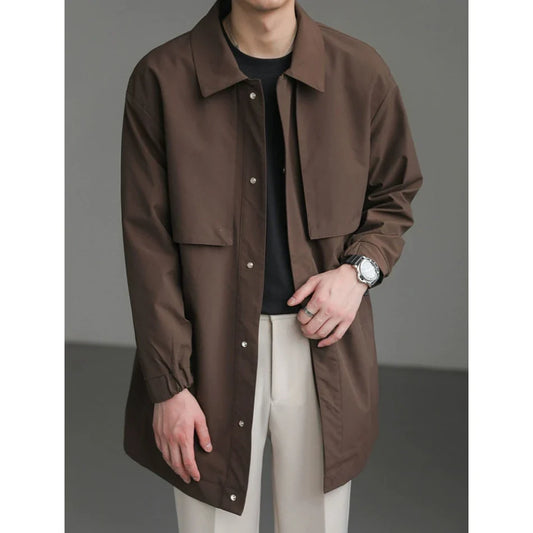 High-end Korean Fashion Mid-length Windbreaker Jacket Man Autumn New Loose Casual Lapel Men's Windbreaker Trench Coat Men