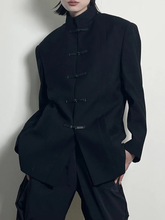 High-end Feel Loose-fit Men's Casual Suit Jacket Stand Collar New Chinese Style Disc Button Fashion Western-style Clothes
