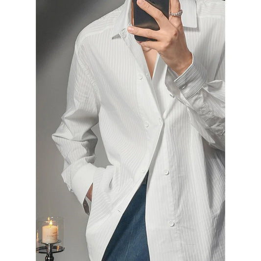 High-end Simple Striped Double Breasted Shirt for Men Autumn New Korean Style Trendy Solid Color Long Sleeves Men's Social Shirt