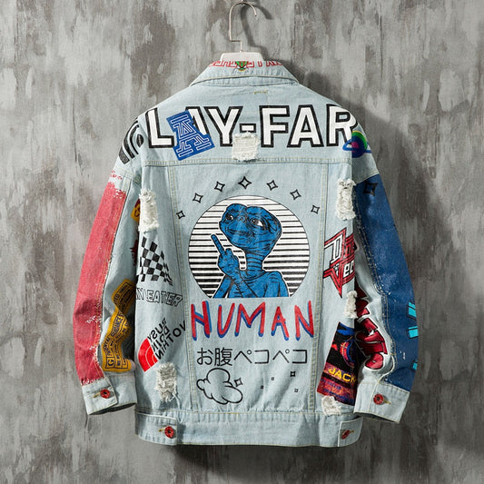 Hip Hop Fashion Printed Jeans Jacket Men Cotton Casual Streetwear Short Style Denim Jacket Coat for Men Spring Jackets