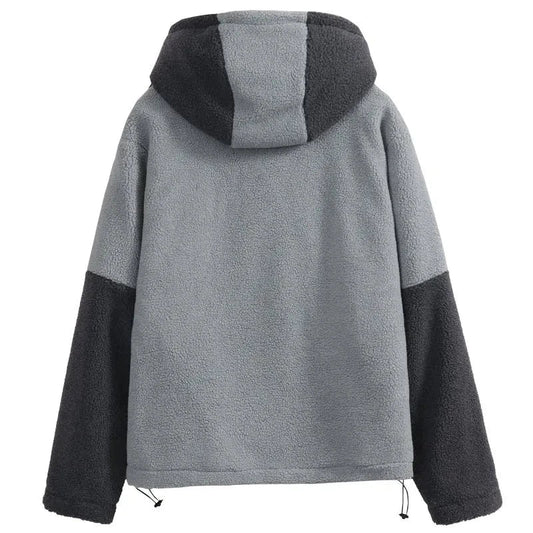 Hip Hop Fleece Fluffy Hooded Jacket Streetwear Harajuku Fuzzy Plush Patchwork Zipper Thick Warm Coats Fashion Loose Jacket
