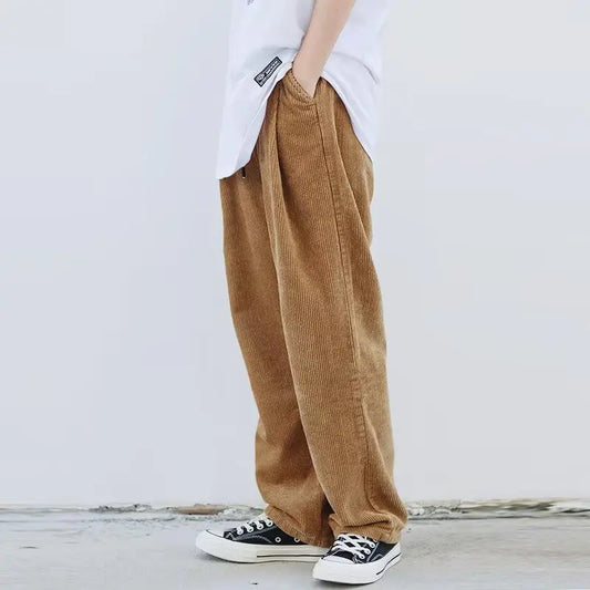 Japanese Corduroy Pants Men Autumn Loose Elastic Waist Solid Color Straight Pants Retro Casual Trousers for Men Baggy Pants