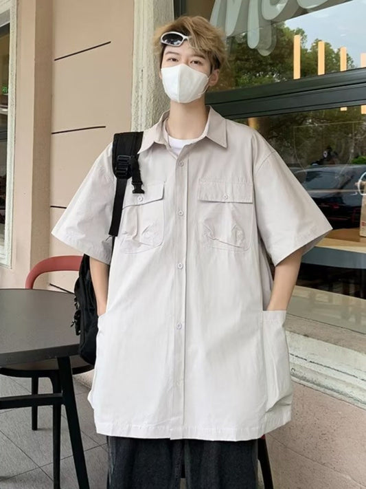 Japanese cityboy workwear three-quarter sleeve shirt men's summer new retro shirt youthful wear tops