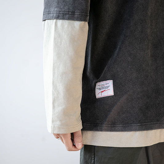 Japanese Streetwear Fake Two Sweatshirts Fashion Round Neck Loose Pullover Men Clothing Harajuku Top Hip Hop Casual Clothes