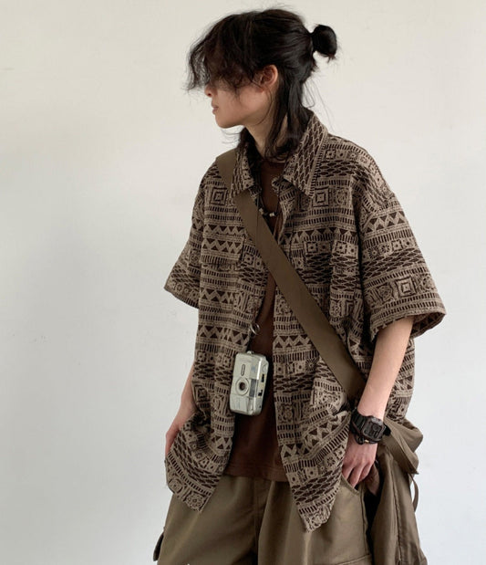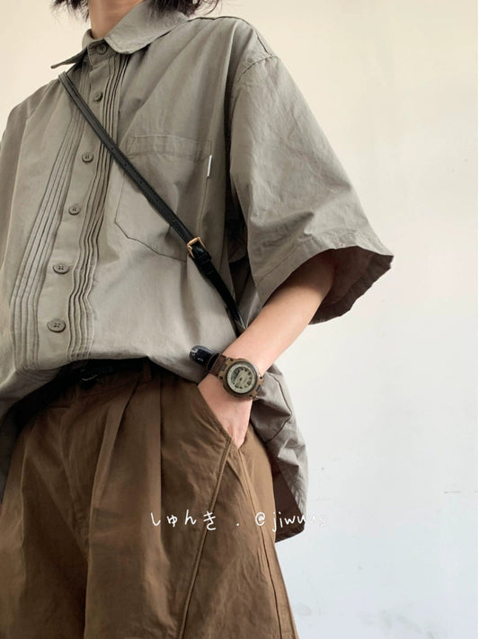 Japanese retro short-sleeved work shirt summer new vintage casual loose trendy ethnic style shirt jacket
