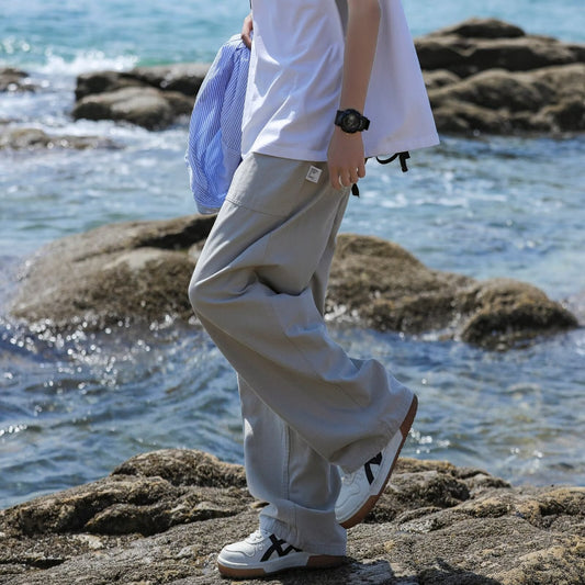 Japanese retro simple fashion brand all-match overalls men's summer cityboy casual loose drape straight pants