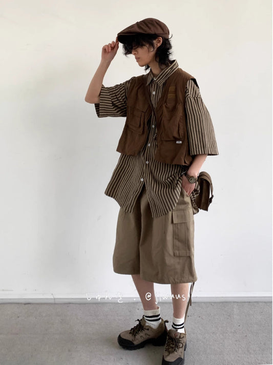 Japanese retro short workwear vest for boys spring and autumn new style college style camera function jacket top