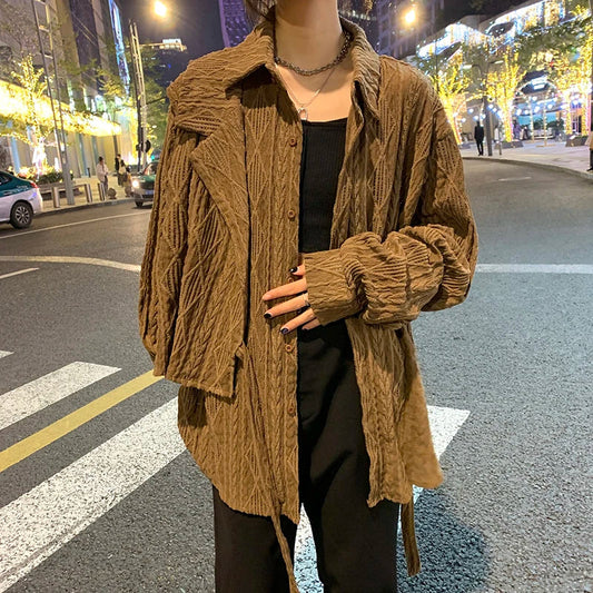 Japanese Streetwear High Quality Waffle Plaid Shirts Tops Spring Autumn Harajuku Loose Casual Coat Korean Clothes Men Clothing