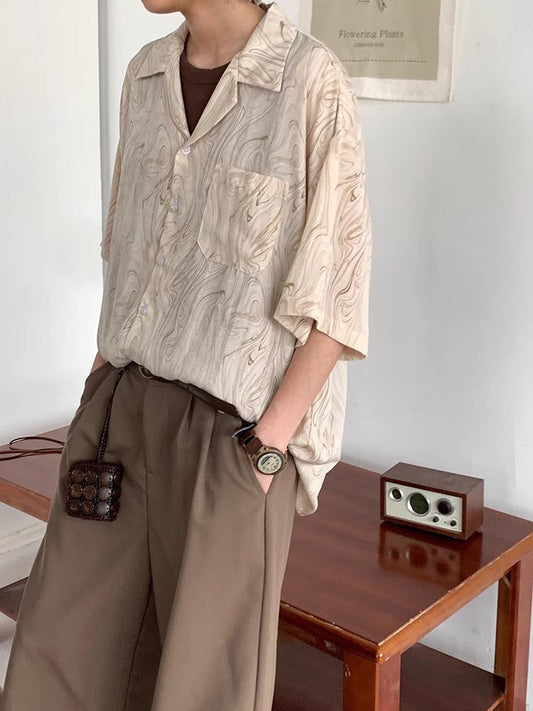 Japanese style niche retro polo shirt thin men's summer new pattern Cuban collar short-sleeved shirt top