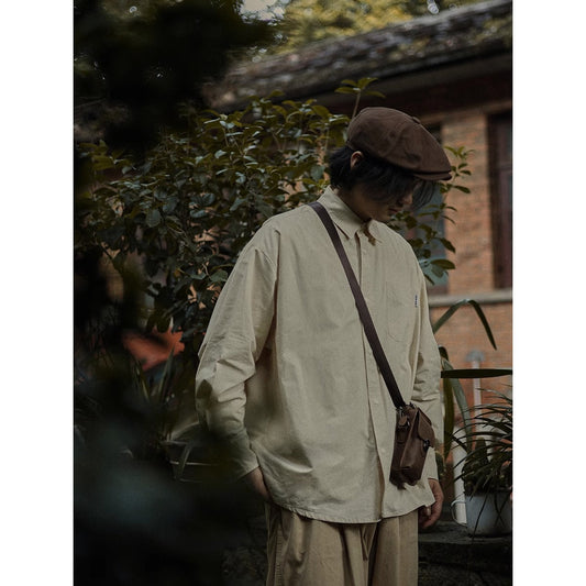 Japanese youth work shirt men's long sleeve spring and autumn new casual loose solid color retro shirt jacket trend