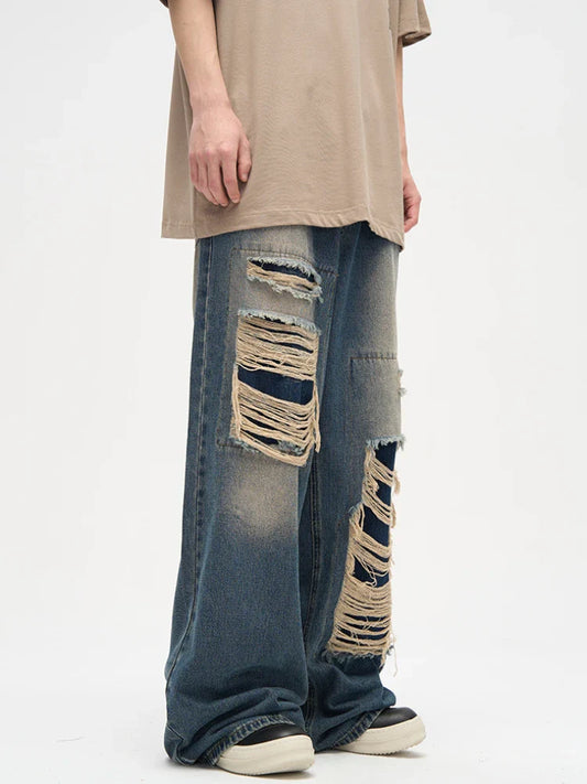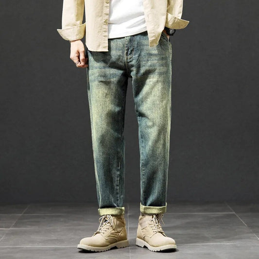 Jeans for Men Vintage Baggy Flare Trousers Autumn Casual Fashion Street Distressed Winter Wide Leg Streetwear Y2k Denim Pants