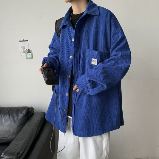 Japanese style wear Corduroy shirt men's long sleeved summer thin style wear ruffian handsome coat in spring and autumn