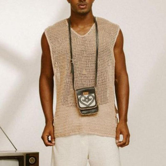 Khaki Knit Mesh Vest Men Transparent Sexy Men's Tank Tops See Through Men's Designer Clothes Sleeveless Tee Streetwear