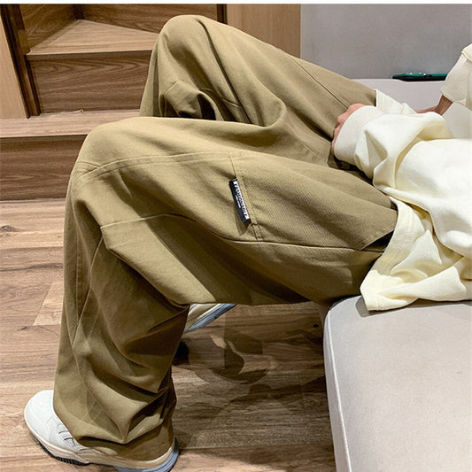 Khaki Casual Pants for Men Japanese Streetwear Hip Hop Black Trousers Male Oversize Vintage Retro Spring Cotton Loose