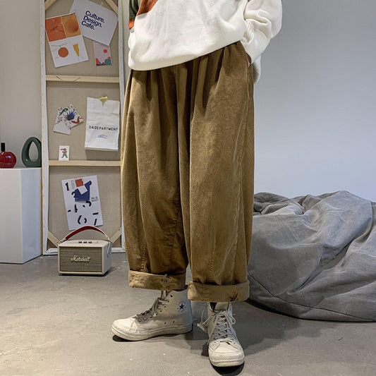 Khaki Corduroy Wide Leg Pants for Men Oversize Wide Leg Trousers Baggy Wide Pants Men Vintage Streetwear Hip Hop