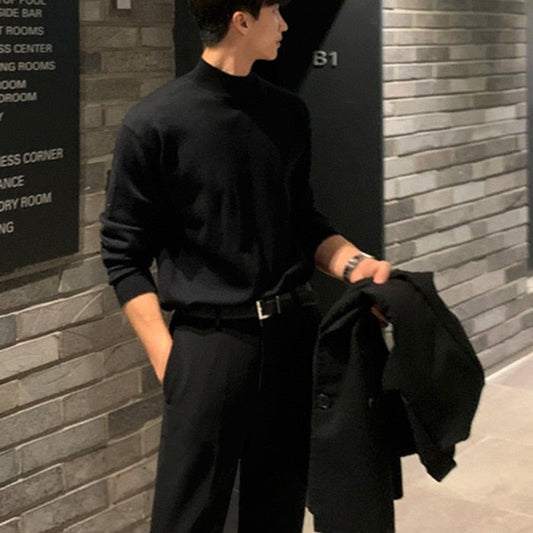 Knitted Mens Cardigan High Quality Button Mock Neck Sweater for Men Winter Fashion Suit Standing Collar Slimming Cardigans Men