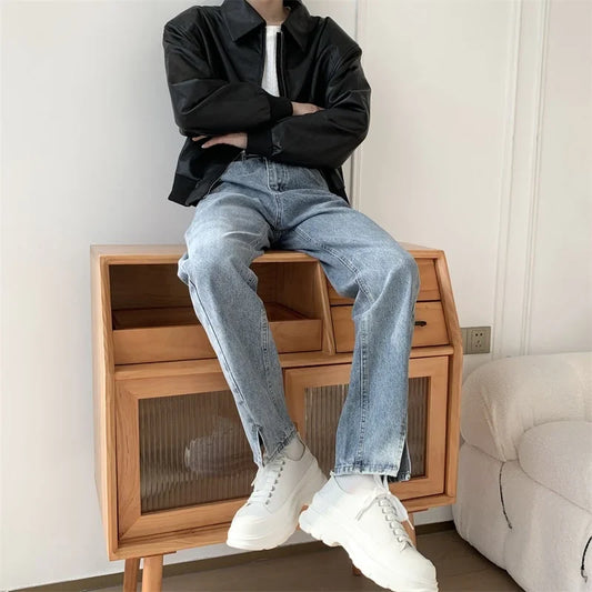 Korean Blue Jeans Men Slim Fit Fashion Casual Vintage Jeans Men Streetwear Hip-hop Straight Denim Pants Mens Trousers M-2XL