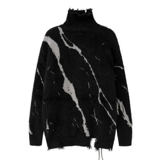 Knitwear Sweater Black Turtleneck Winter Oversize Pullover Fashion Punk Gothic Streetwear High Street Men's And Women's