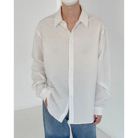 Korean Fashion New High-end Long Sleeve Shirts for Men No-iron Drape Solid Color Light Mature Style Casual Loose Shirt Men
