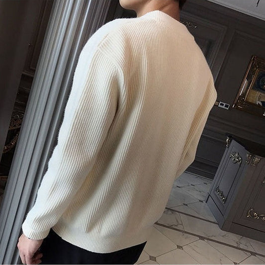 Korean Fashion Sweaters Men Autumn Solid Color Wool Sweaters Slim Fit Men Street Wear Mens Clothes Knitted Sweater Men Pullovers