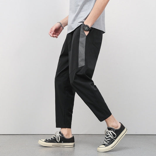 Korean Summer Men'S Thin Splicing 9-Point Pants Ice Silk Ventilation Trend Straight Tube Loose Elastic Legged Casual Trousers