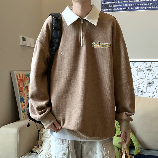 Korean wind Sweatshirt Men Women Lapel Collar Hoodie Trendy Harajuku College Style Oversize Casual Sports Polo lapel sweater