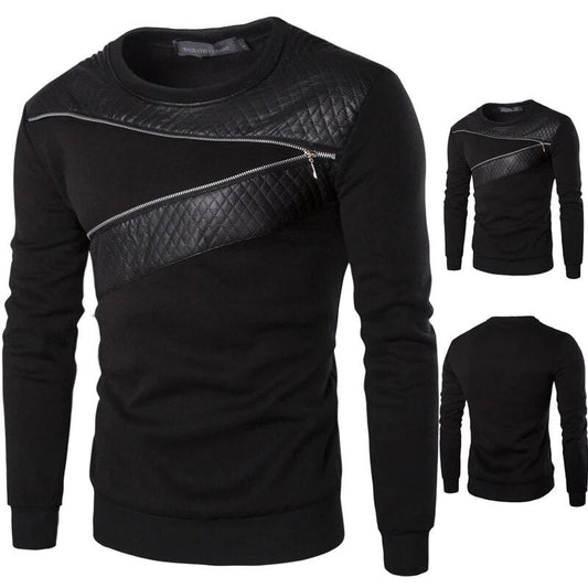 Leather Patchwork Hoodies Men Zipper Decoration Long Sleeve Sweatshirt Tops Men's Leisure Hoodie Clothes 4XL 5XL