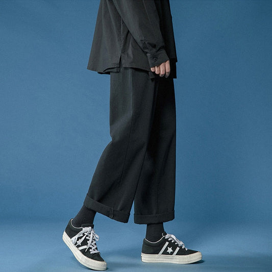 Legible Women Pant Casual Cotton Wide Leg Pants Retro Ankle Length Elastic Waist Loose Trousers Female
