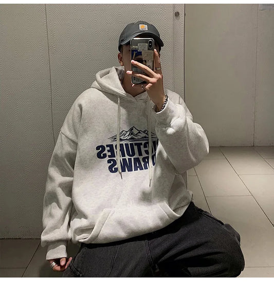 Letter Printing Hoodie Men Oversized Hooded Sweatshirts Fleece Autumn and Winter Korean Fashion Couple Clothing Pullover Hoodies
