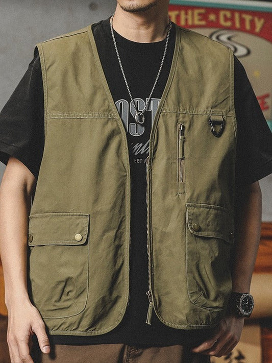American retro workwear vest men new mountain outdoor camping jacket coat multi-pocket vest vest