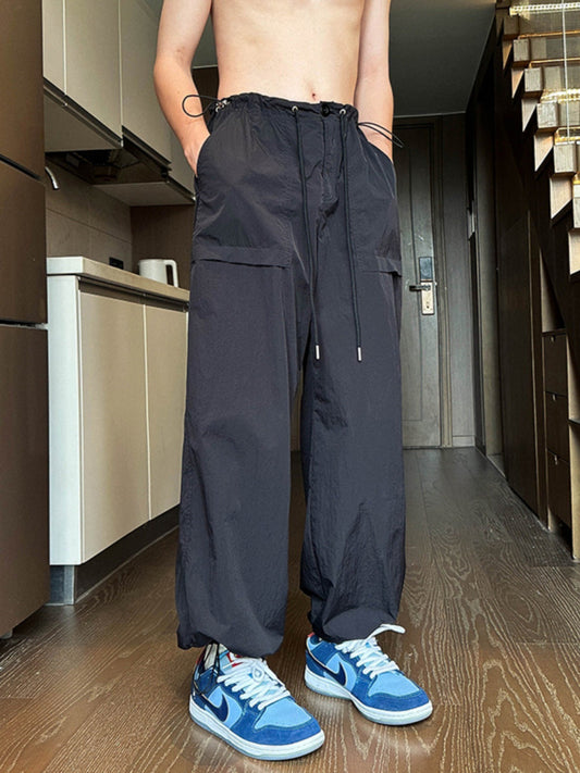 American retro paratrooper pants men and women summer trendy loose drawstring paper bag assault pants quick-drying casual workwear trousers