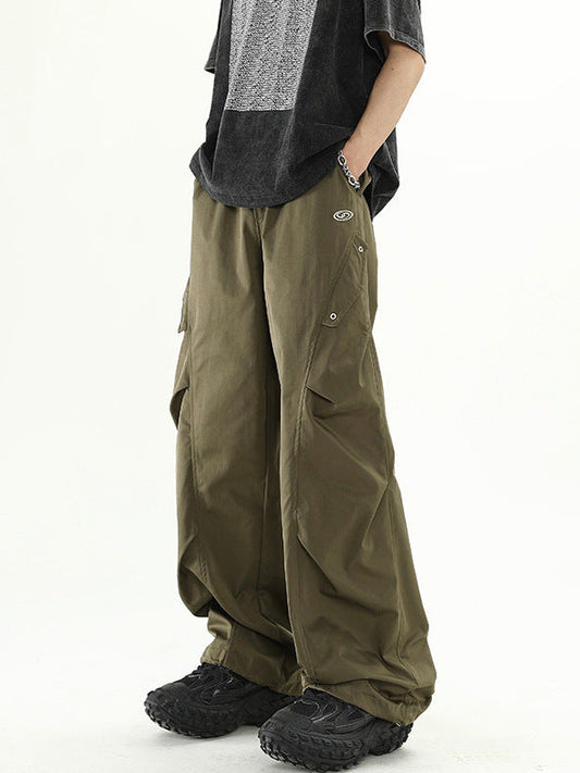 American retro workwear paratrooper pants men summer new design wide-leg pants loose straight casual pants