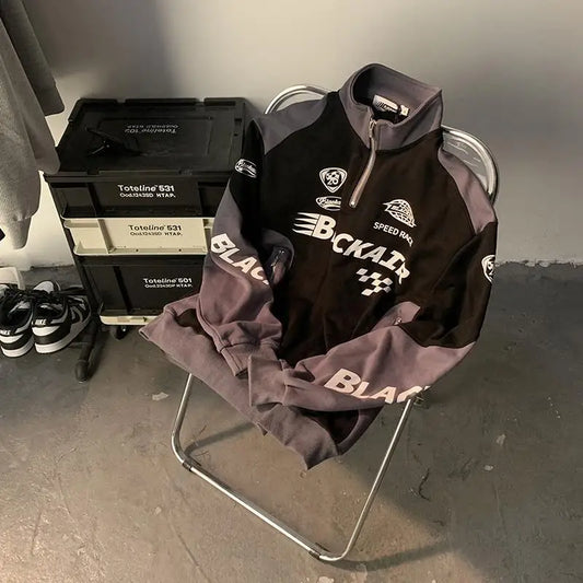 American retro street alphabet print stitching stand collar sweater men and women spring and autumn tide brand sports top