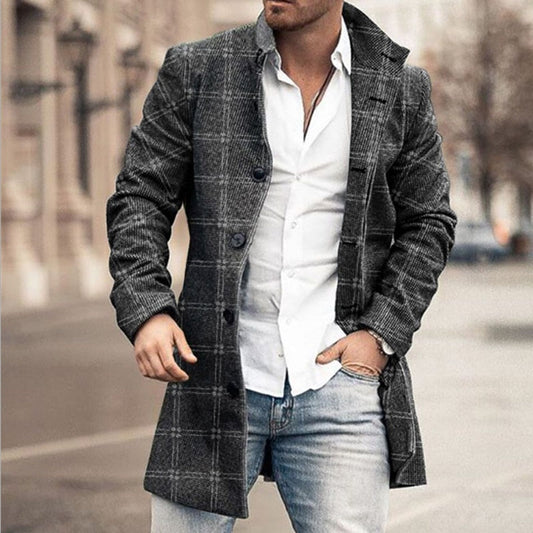 Man Single Breasted Jacket Plaid Button Long Slim Coat Long Sleeve Autumn Winter Warm Casual Harajuku Street Outwear Retro