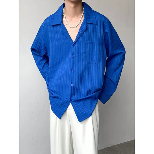 Mature Luxury Korean Clothes Loose Casual Long Sleeve Shirts for Men Spring Trend Ice Silk Drape Mens Shirts Top Quality
