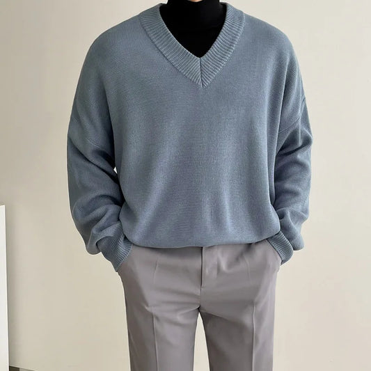 Men Winter V-neck Thickening Sweater Solid Color Casual Pullovers Fashion Korean Style Casual Knitwear For Male