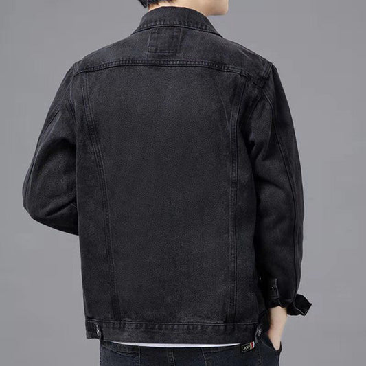 Men Black Denim Jacket Streetwear Spring Autumn Vintage Casual Long Sleeves Top Fashion Turndown Collar Loose Coat Jaqueta Jeans