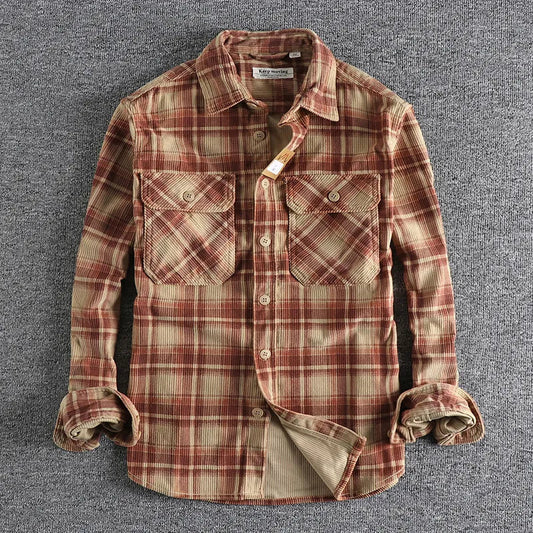 May Khaki retro spring and autumn tide style men's long-sleeved shirt washed corduroy comfortable daily all-match tide coat