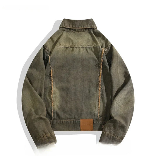 Men and Women Washed Distressed Raw Edged Denim Jacket European American Heavy Industry Handsome Loose Casual Street Punk Jacket