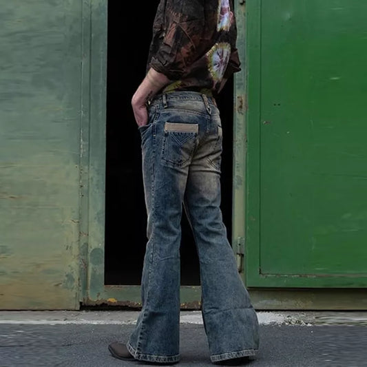 Men Flared baggy Jeans Bootcut Leg Pants Distressed Patchwork Jeans New Designer Punk Stlye Bell Bottom Denim Trousers