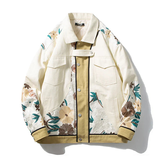 Men Flowers Print Cotton Twill Winter Casual Jacket Slim Fit Design Streetwear Women Denim Jackets Retro Style Cowboy Outerwear