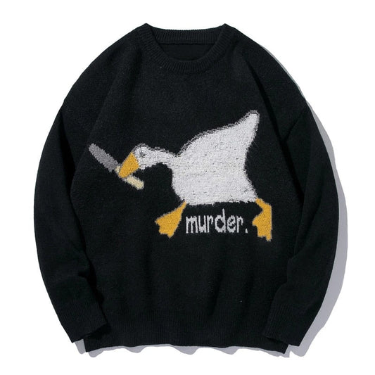 Men Harajuku Sweater Cartoon Spoof Goose Print Pullover Casual O-neck Knitted Top Hip Hop Loose Sweater Couple Streetwear Fall