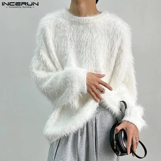 Men Pullovers Solid Color Plush O-neck Long Sleeve Streetwear Casual Men Clothing Autumn Stylish Sweaters S-5XL