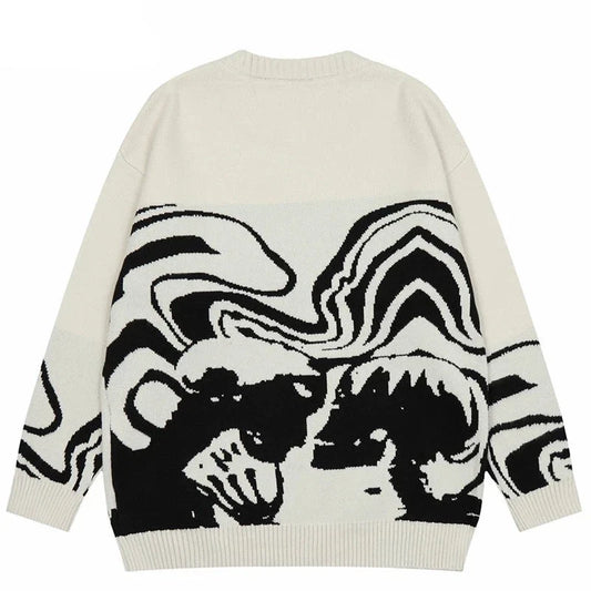 Men Streetwear Sweater Retro Painting Skull Graphic Hip Hop Knitted Sweater Vintage Pullover Casual Wool Sweater Hipster