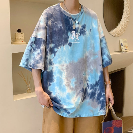 Men Summer New Hot Hip Hop Streetwear Fashion T-Shirts Cotton Oversized Top Tees Mens Casual Tie-Dye O-Neck Short Sleeve T Shirt
