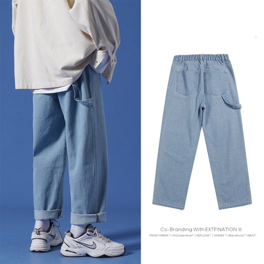 Men Streetwear Blue Jeans Women Black Jeans Korean Fashions Harem Pants Male Denim Pants OverSize