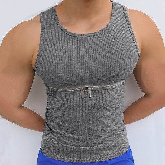 Men Tank Tops Zipper Solid Color Streetwear O-neck Sleeveless Stylish Vests Skinny Summer Casual Men Clothing S-5XL