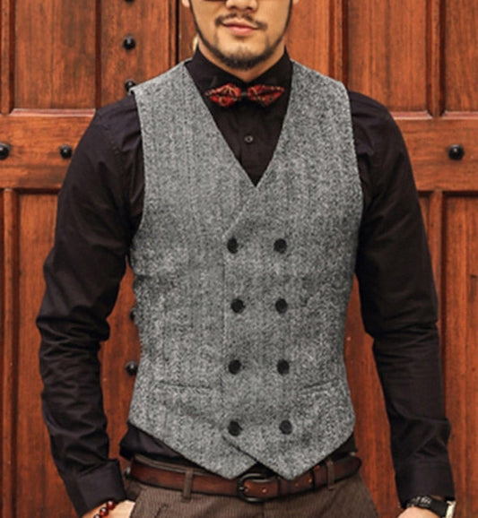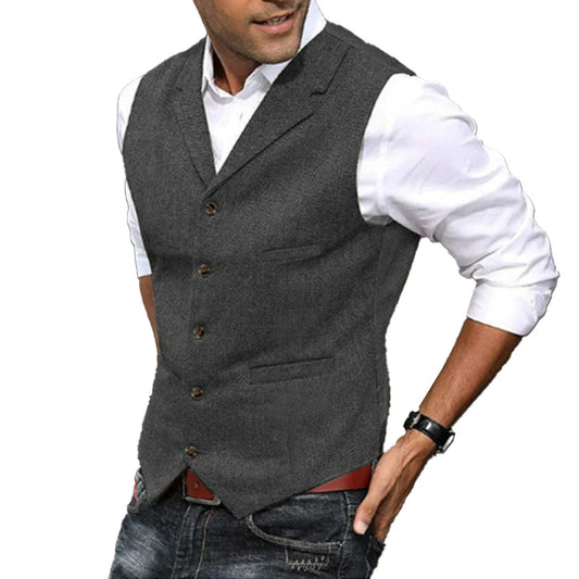 Men Vintage Herringbone Notch Lapel Slim Retro Suit Vest Tweed Waistcoat Wedding Wedding Business Casual Male Waistcoat Jacket