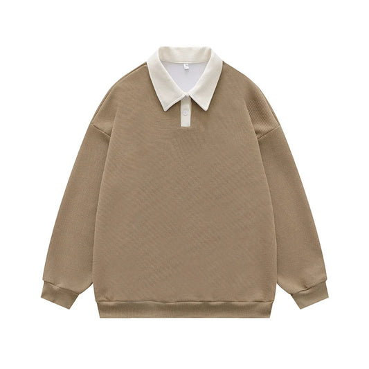 Men Turn-down Collar Sweatshirts College Youth Patchwork Casual Long Sleeve Fashion Polo Loose Pullover Male Spring Autumn Top